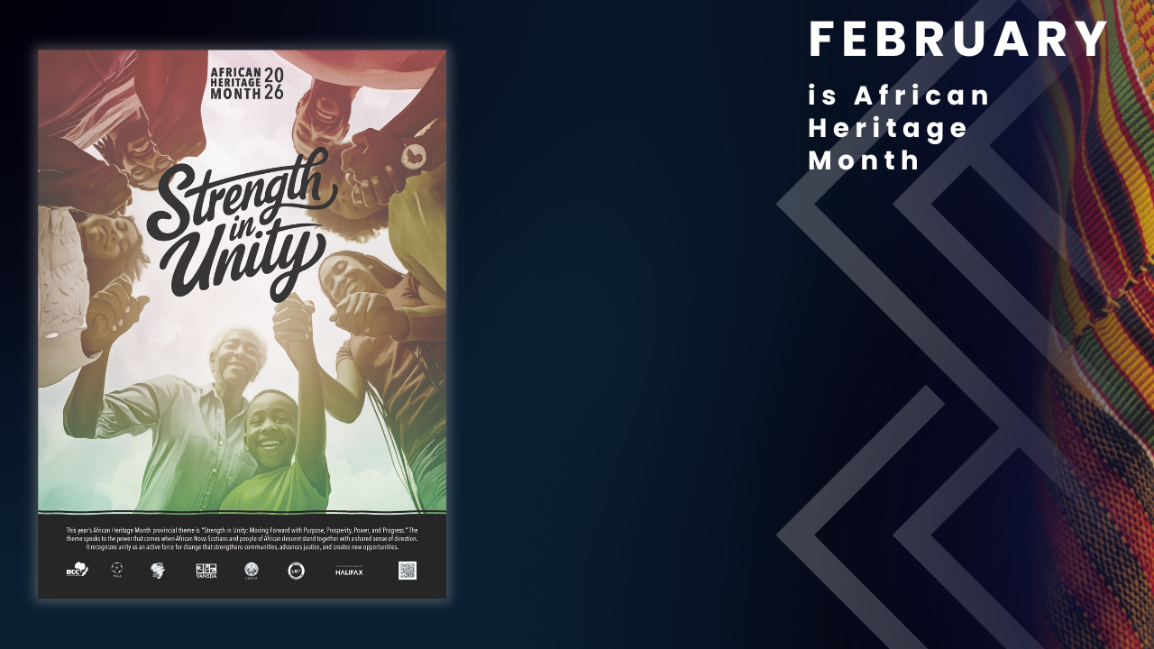 This year’s African Heritage Month provincial theme is “Strength in Unity: Moving Forward with Purpose, Prosperity, Power, and Progress.” The theme speaks to the power that comes when African Nova Scotians and people of African descent stand together with a shared sense of direction. It recognizes unity as an active force for change that strengthens communities, advances justice, and creates new opportunities.